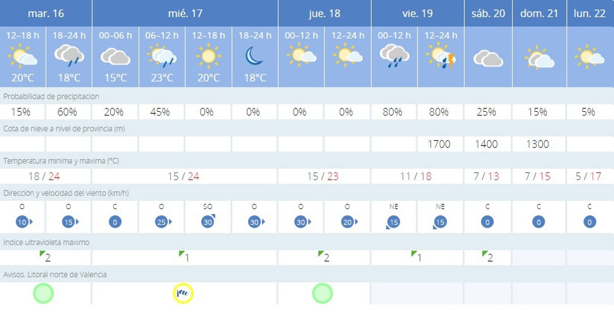 Predicción del tiempo para Valencia según la AEMET para hoy 16 de enero - AEMET