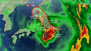 La tormenta tropical Nepartak tocará tierra en Japón durante las próximas horas con vientos de hasta 110 kilómetros por hora y dejará grandes acumulaciones en el noreste del país, según la predicción meteorológica de eltiempo.es