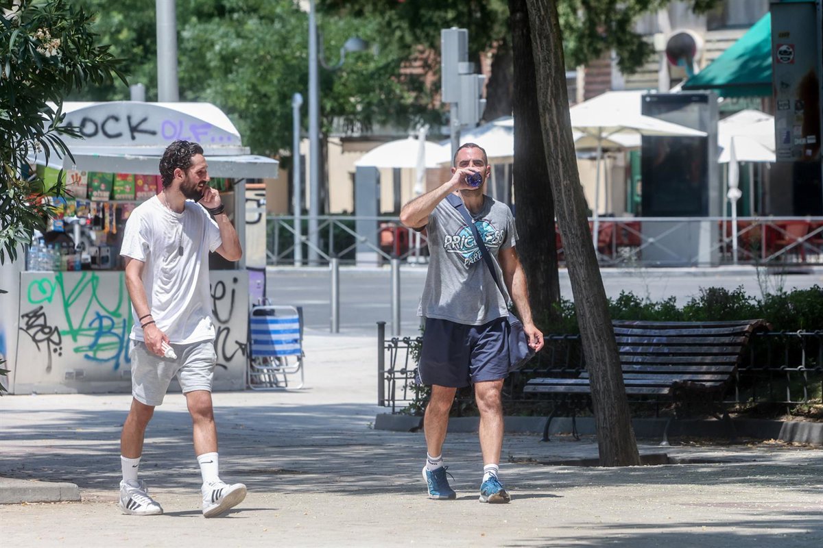 Un joven bebe agua, a 12 de julio de 2022, en Madrid (España). - Ricardo Rubio - Europa Press