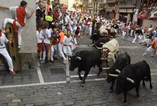Por detrás venían hermanados los cinco toros restantes junto con los cabestros. Uno de los astados ha protagonizado una embestida contra un mozo que corría por la izquierda en el tramo de Mercaderes, pero no ha llegado a empitonarle. La manada ha enfilado Estafeta a un ritmo más lento que la cabeza, lo que ha permitido a los corredores realizar bonitas carreras.