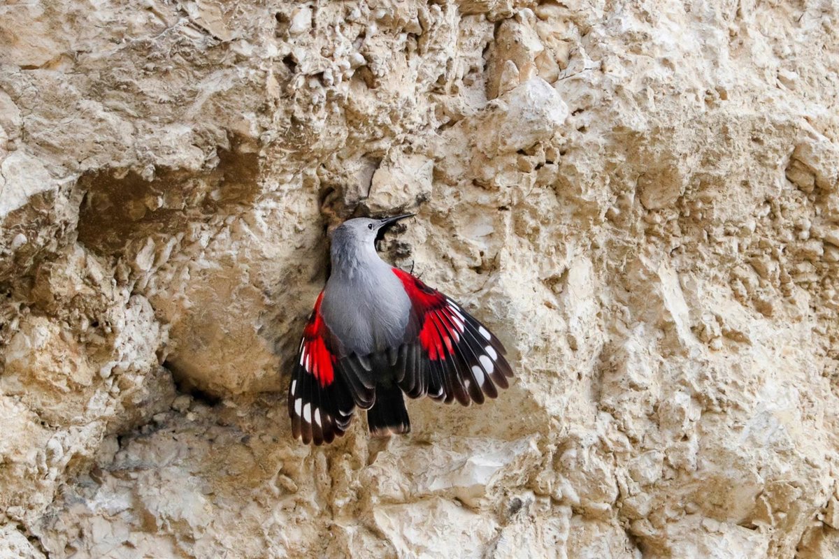 La de este año es el treparriscos, una de las aves más llamativas de la avifauna española, aunque también es una de las más esquivas. Su coloración, que es pizarrosa de forma predominante, le hace pasar inadvertido hasta que levanta el vuelo desplegando sus anchas alas redondeadas de un llamativo color bermellón. Se trata de un ave inconfundible, de vuelo ondulado y espasmódico como el de una enorme mariposa. Como su nombre vernáculo y científico indican, esta ave está íntimamente ligada a los cortados rocosos en zonas de montaña.