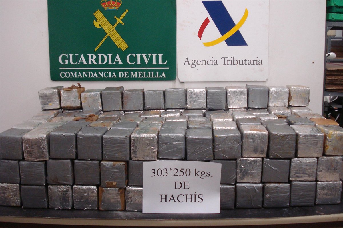 Una vez cotejada la droga localizada, del tipo "hachís", distribuida en 208 paquetes de diferentes formas y tamaño, arrojó un peso superior a los trescientos kilogramos (303.000 gramos).