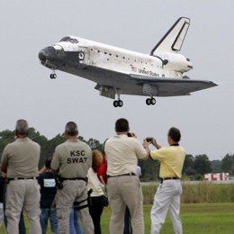 La tripulación del transbordador Discovery visita la estación espacial durante siete días.