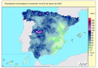 Los últimos coletazos de la borrasca Martinho han elevado hasta 479 litros por metro cuadrado (l/m2) las precipitaciones acumuladas desde el pasado 1 de octubre de 2024 hasta el 25 de marzo de 2025, un 23% por encima de lo normal para este momento (391 l/m2), según datos de la Agencia Estatal de Meteorología (AEMET) recogidos por Europa Press.