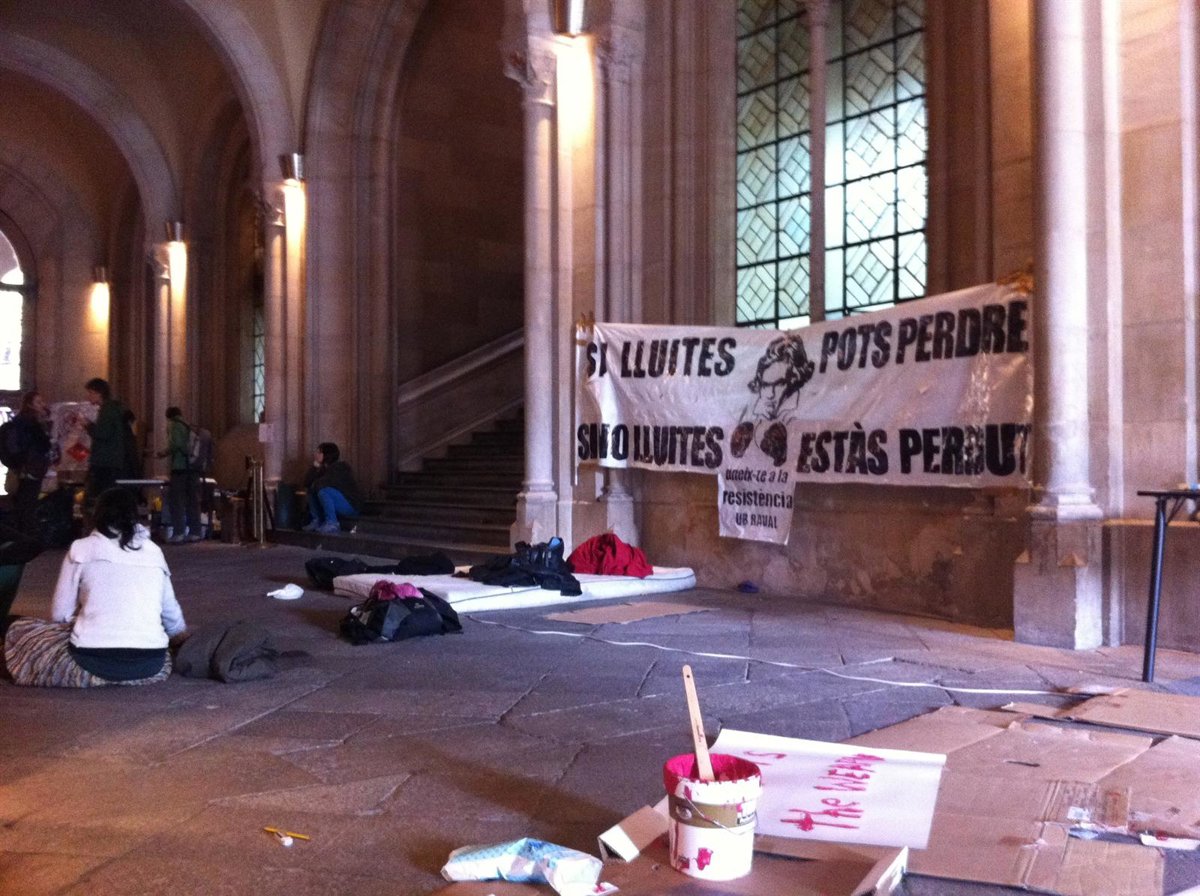 Los alumnos que han tomado la palabra en la asamblea --en la que había algunos profesores y personal administrativo apoyándoles-- han advertido que el desalojo es muy posible, sobre todo después de que el adjunto al rector, Carles Carreras, haya reclamado este jueves a la Consejería de Interior que intervenga para acabar con la ocupación que empezó el miércoles a raíz de la manifestación estudiantil contra los recortes presupuestarios.