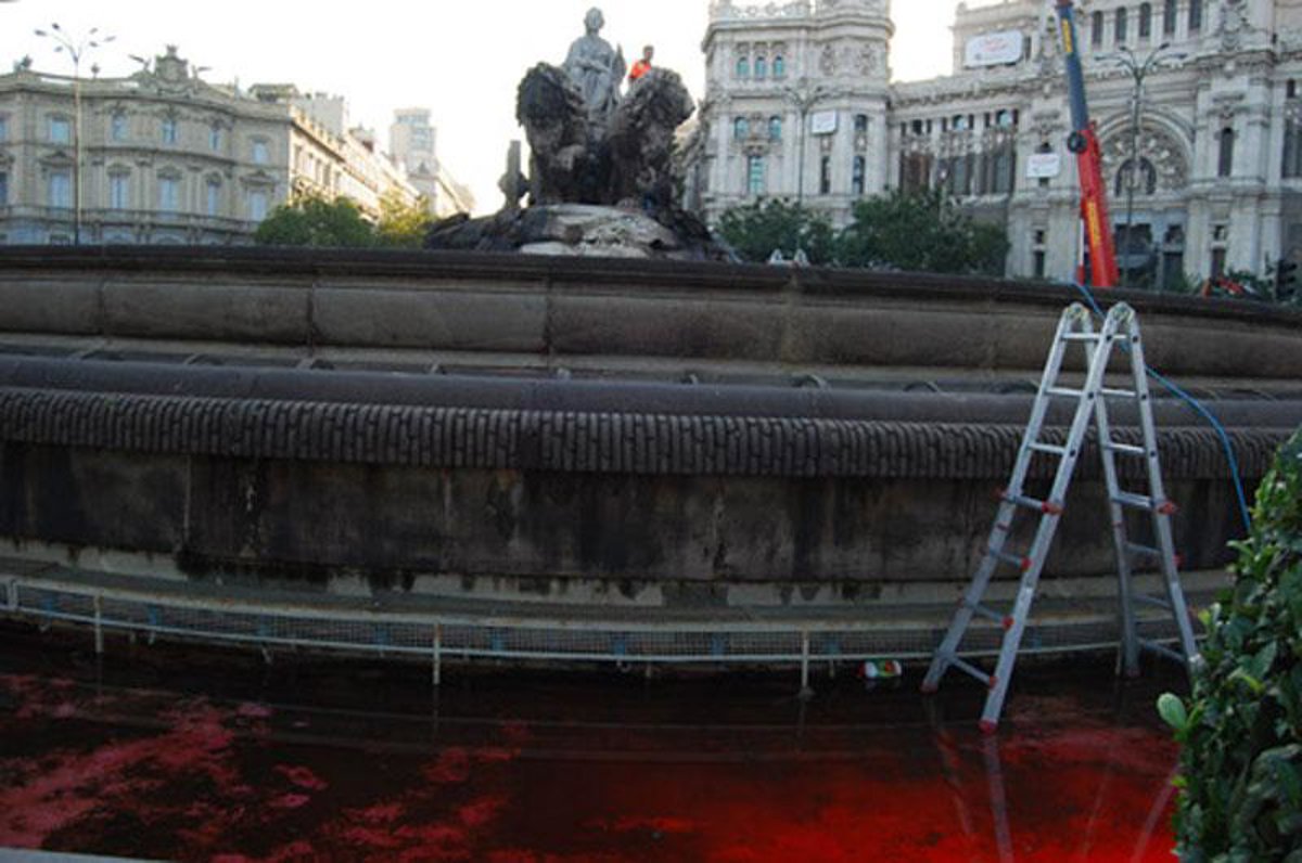 La misma acción repitió durante la madrugada en localidades del sur de la región, como Móstoles y Leganés y en ciudades españolas, como Salamanca, Bilbao, Zaragoza y Valencia. No es la primera vez que esto sucede. En varias ocasiones y aprovechando algún aniversario desde el asesinato de Palomino, que tuvo lugar el 11 de noviembre de 2007, las principales fuentes madrileñas amanecieron teñidas de rojo.