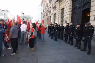 Los sindicalistas, que portan banderolas de CGT y CCOO, se encuentran en estos momentos en la zona de Callao. A su alrededor, hay una fuerte presencia policial.