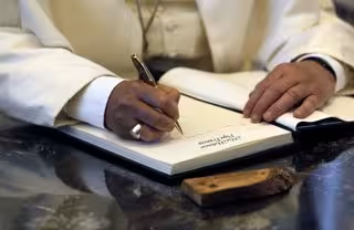 18 - Detalle del mensaje que escribió Francisco en el libro de visitas de la residencia de Peres