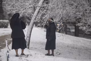 Dos monjas en el parque del Retiro, tras el paso de la borrasca Filomena, en Madrid (España). - Eduardo Parra - Europa Press