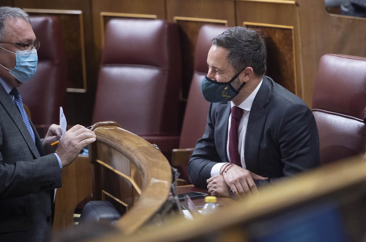 El líder de Vox, Santiago Abascal (d), en una sesión plenaria en el Congreso de los Diputados, a 16 de diciembre de 2021, en Madrid, (España). Durante el pleno se ha abordado el proyecto de Ley Orgánica de ordenación e integración de la Formación Profes - Alberto Ortega - Europa Press