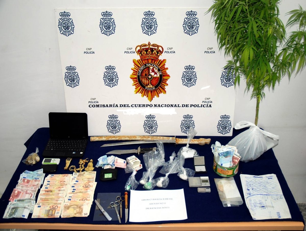 Además de la cocaína y heroína encontradas en los inmuebles, que equivaldrían a unas 400 dosis que habrían alcanzado un valor de 3.000 euros aproximadamente, la Brigada de Estupefacientes se ha incautado además de plantas de marihuana, joyas de oro de gran valor, una motocicleta, varias armas blancas, teléfonos móviles y 5.500 euros en efectivo.