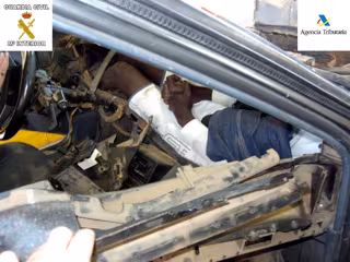 Una vez realizada una pequeña apertura en el mismo, hallaron allí un doble fondo y en su interior, al tacto, al introducir la mano, lo que podía ser una persona. Para poderlo extraer se utilizó la fuerza física al objeto de arrancar literalmente todo el salpicadero, con objeto de auxiliar con prontitud a la persona que se encontraba encajonada en tan pequeño espacio. En el momento de su auxilio presentaba síntomas de entumecimiento, ansiedad, dolor en sus articulaciones y respiración agitada.