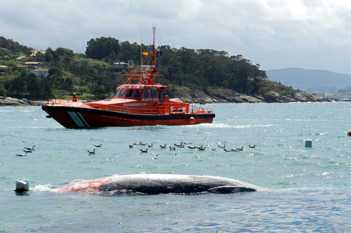 Una embarcación de Salvamento Marítimo ha retirado el cuerpo de la ballena que flotaba muerta en la Ría de Vigo, de unos doce metros de longitud, según ha confirmado la Coordinadora para o Estudo dos Mamíferos Marinos (Cemma).