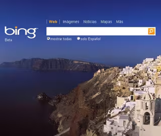 La dirección .com del buscador se abre directamente en castellano en nuestro país, aún en su fase beta. La web es colorista, otorga el protagonismo a una gran foto que cambia cada día y sus opciones no distan mucho de lo que, no en vano, ha convertido en estándar Google.