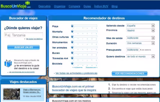 Esta web permite al usuario encontrar el destino que se ajuste a lo que busca y así organizar un viaje a su gusto, ya que le pone en contacto con las mejores agencias especializadas del mercado y le permite comparar precios, rutas, días y condiciones en un solo portal.