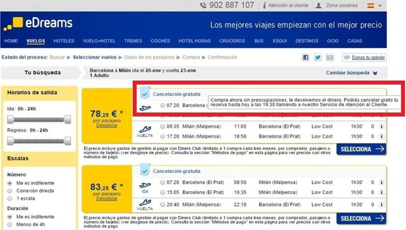 Con la supresión de los gastos de gestión, eDreams busca que quienes decidan cancelar su vuelo el mismo día de la compra no tengan que afrontar este pago.