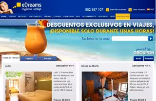 eDreams ha integrado una pestaña en su web con los mejores descuentos en viajes de Groupon.es en respuesta al aumento de la búsqueda de destinos en verano y para que los clientes accedan directamente a las ofertas del día, según ha informado la compañía.