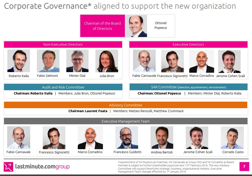 "Después de la adquisición de lastminute.com logramos con éxito una integración rápida y potente", ha destacado Cannavale, quién remarcó que el siguiente paso para desarrollar todo el potencial del negocio combinado es crear una organización única que se centre en mejorar la oferta, redirigir el tráfico a las diferentes webs del grupo y desarrollar plataformas innovadoras en una "nueva estructura de liderazgo" para un crecimiento a largo plazo.