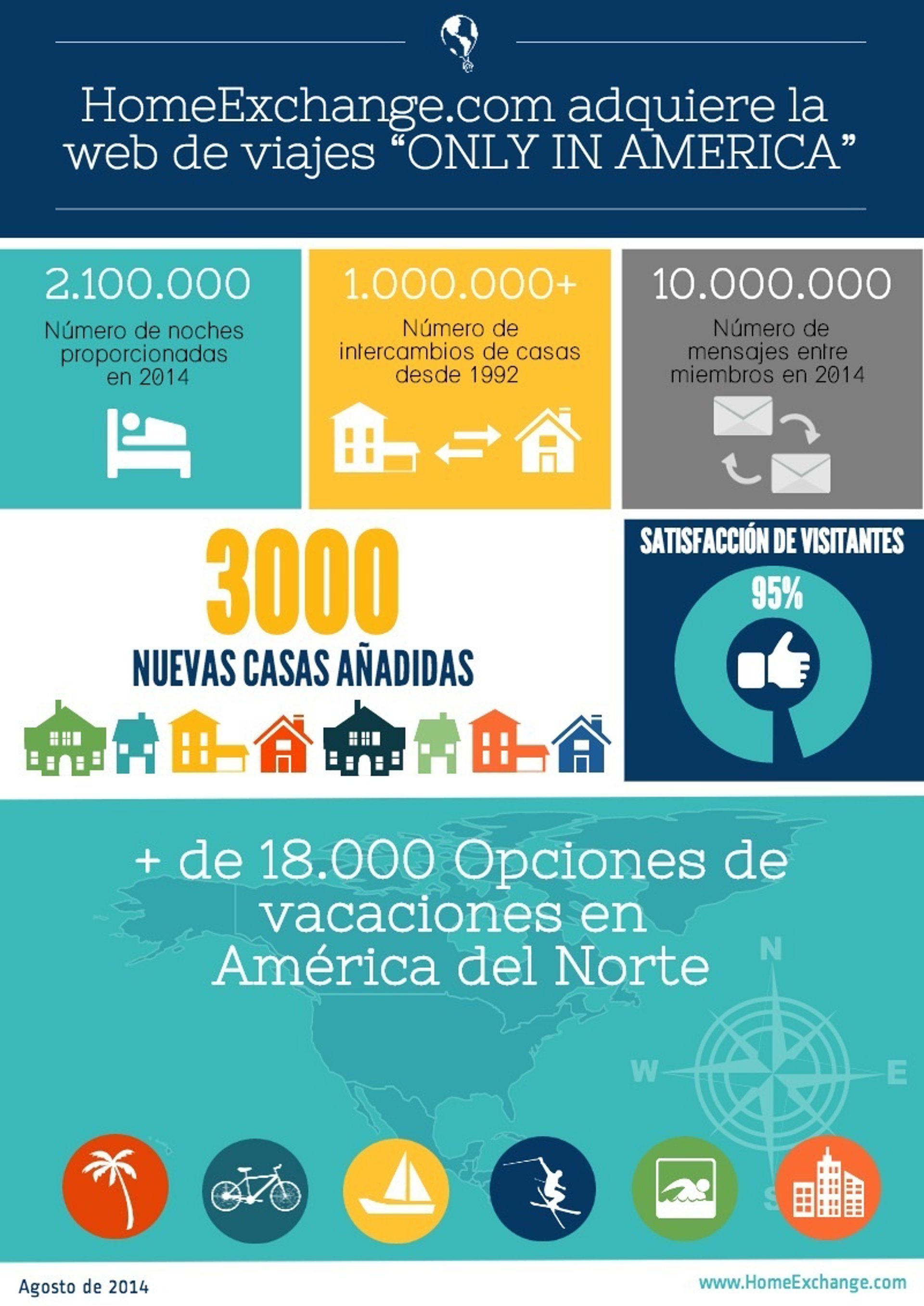 La plataforma de intercambio de casas HomeExchange.com, a la que pertenece IntercambioCasas.com, ha adquirido la web Only in America Home Exchange (OIA) con el objetivo de ampliar su base de miembros en América del Norte.