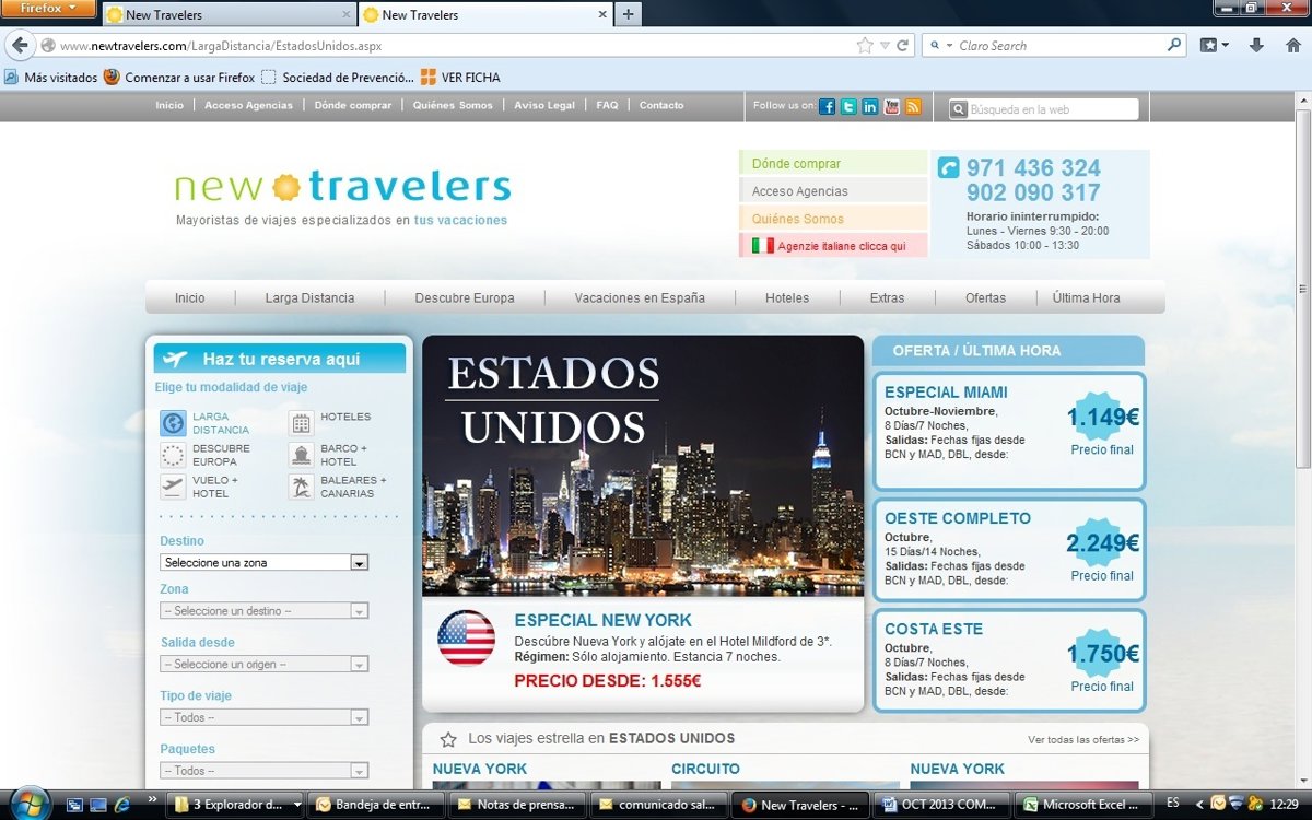 New Travelers ha decidido apostar por el mercado de Estados Unidos como complemento a sus destinos estrella de larga distancia (Tailandia, Dubai y Rusia) con el lanzamiento de paquetes promocionales, informó la compañía en un comunicado.
