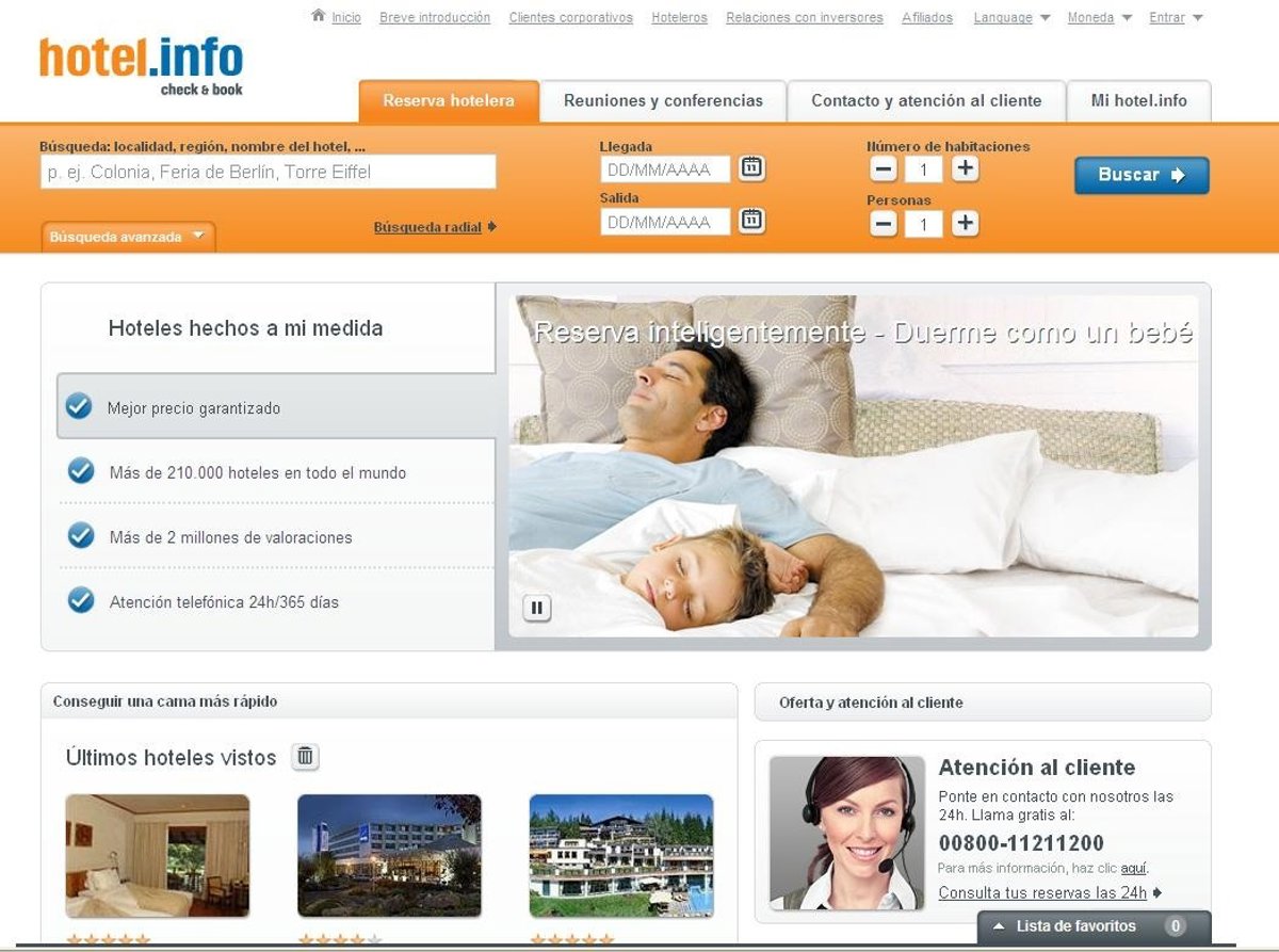 La página de hotel.info, el servicio de reservas hoteleras gratuito con más de 210.000 hoteles en el mundo, ha sido nominada a los 'Premios Mejor Web del Año' por los internautas, gracias a sus últimos cambios de personalización y al fácil acceso a toda su oferta.