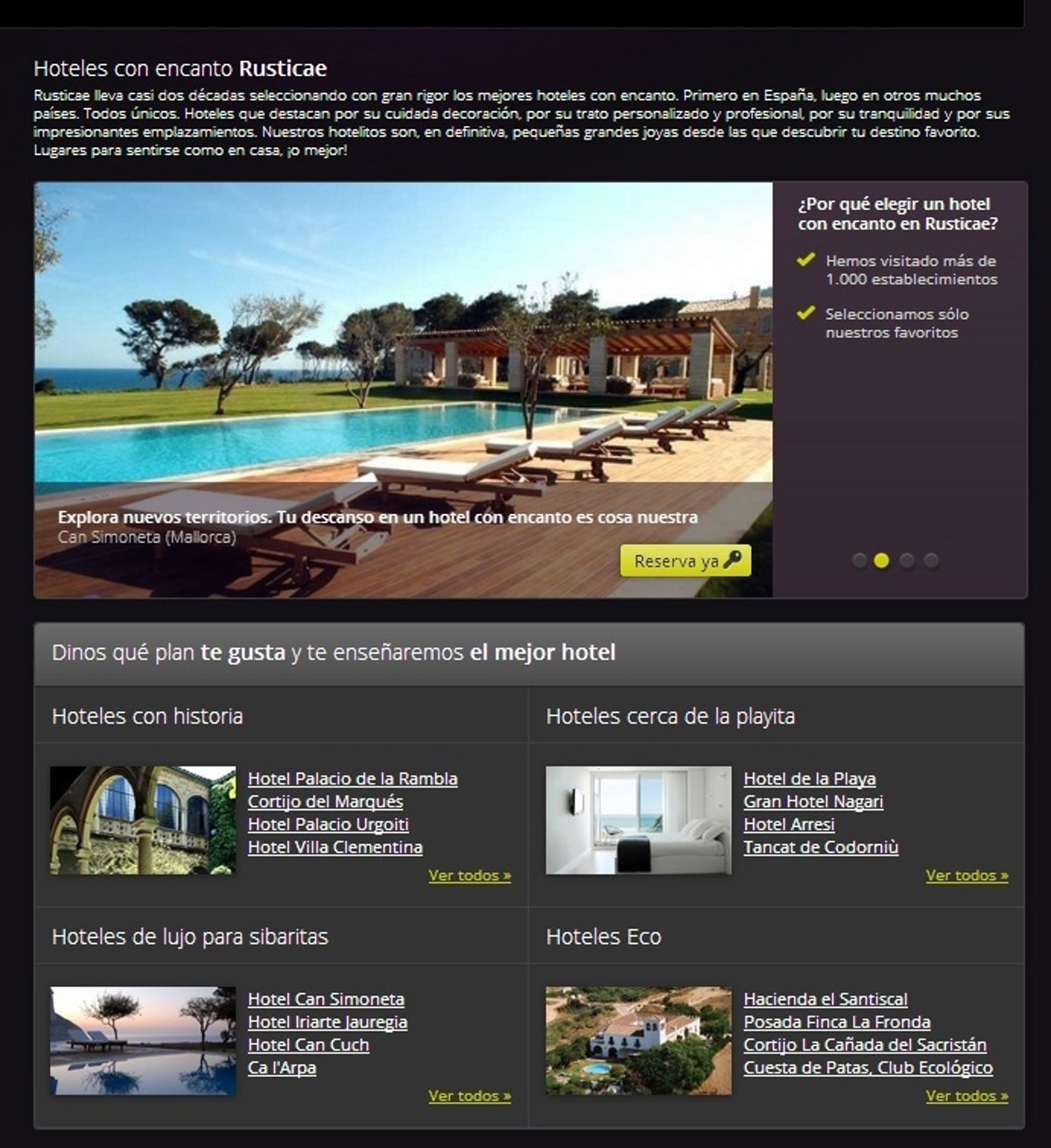 Nuevos criterios de búsqueda, el apartado 'Planazos Rusticae', opiniones de los huéspedes, mejores precios y ofertas y la figura de un experto que realiza recomendaciones sobre los hoteles, son otras de las novedades de la nueva página.