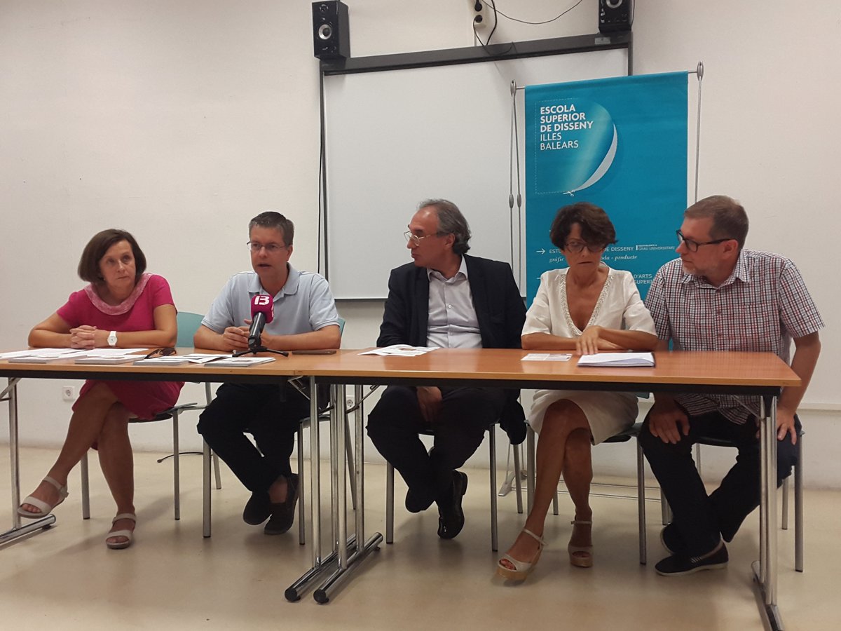 A la presentación han asistido el conseller de Educación y Universidad, Martí March, el director general de Política Universitaria y Enseñanza Superior, Juan José Montaño, la directora de la Easdib, Maria Abando, y la antigua directora del centro, Irene Mestre.