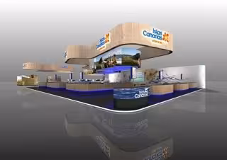 El pabellón, que albergará a 455 empresas y en el que cada isla contará con su espacio exclusivo, estará equipado con una espectacular megapantalla LED de formas curvas que colgará del techo.