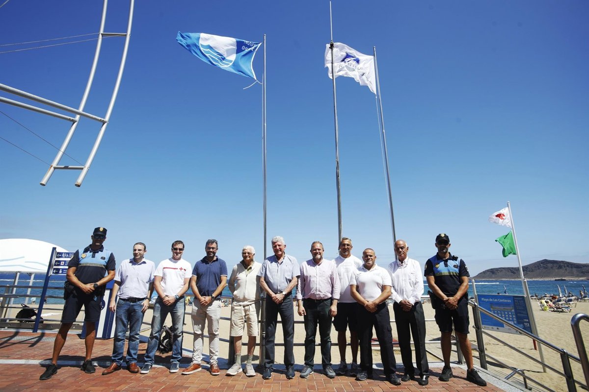 La Playa de Las Canteras de Las Palmas de Gran Canaria ha izado un año más la Bandera Azul y la bandera Q de Calidad Turística, que acreditan su condición de playa comprometida con la gestión sostenibilidad y la calidad turística, según ha informado el Ayuntamiento capitalino en una nota de prensa.
