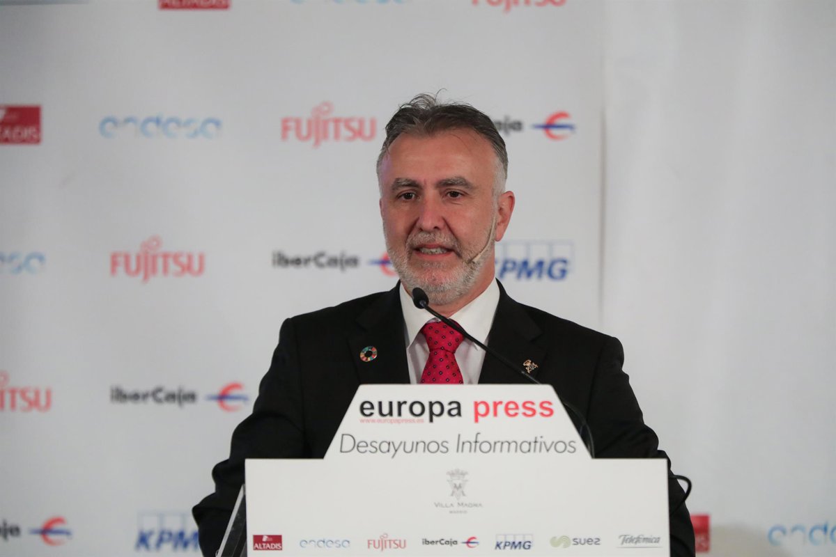 El presidente de Canarias, Ángel Víctor Torres durante su intervención en un Desayuno Informativo de Europa Press ,en el Hotel Villa Magna, en Madrid (España), a 5 de diciembre de 2019. - Jesús Hellín - Europa Press
