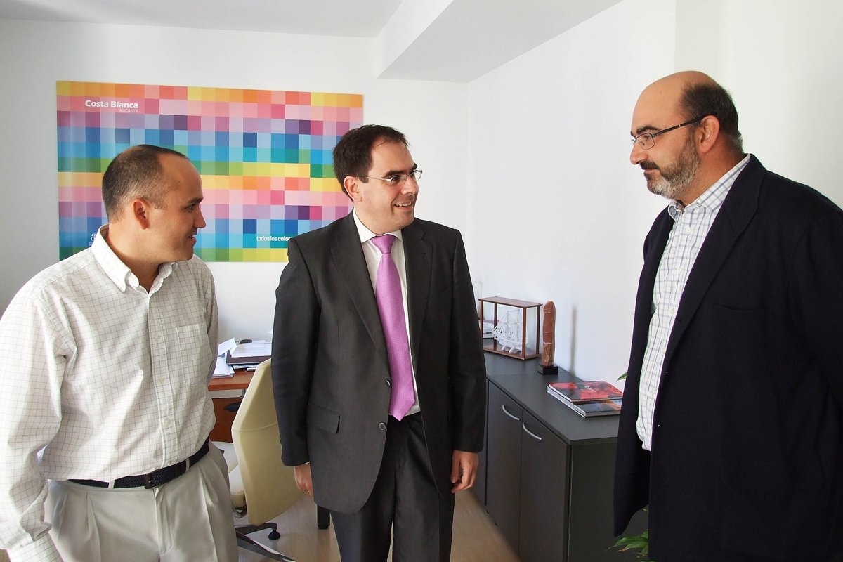 El diputado de Turismo, Joaquín Albaladejo, se ha reunido este lunes con el presidente de la Asociación de Campos de Golf de la provincia, Alexis García, en un encuentro en el que también ha participado el vicepresidente de la Federación Valenciana de Golf, Luis Méndez.