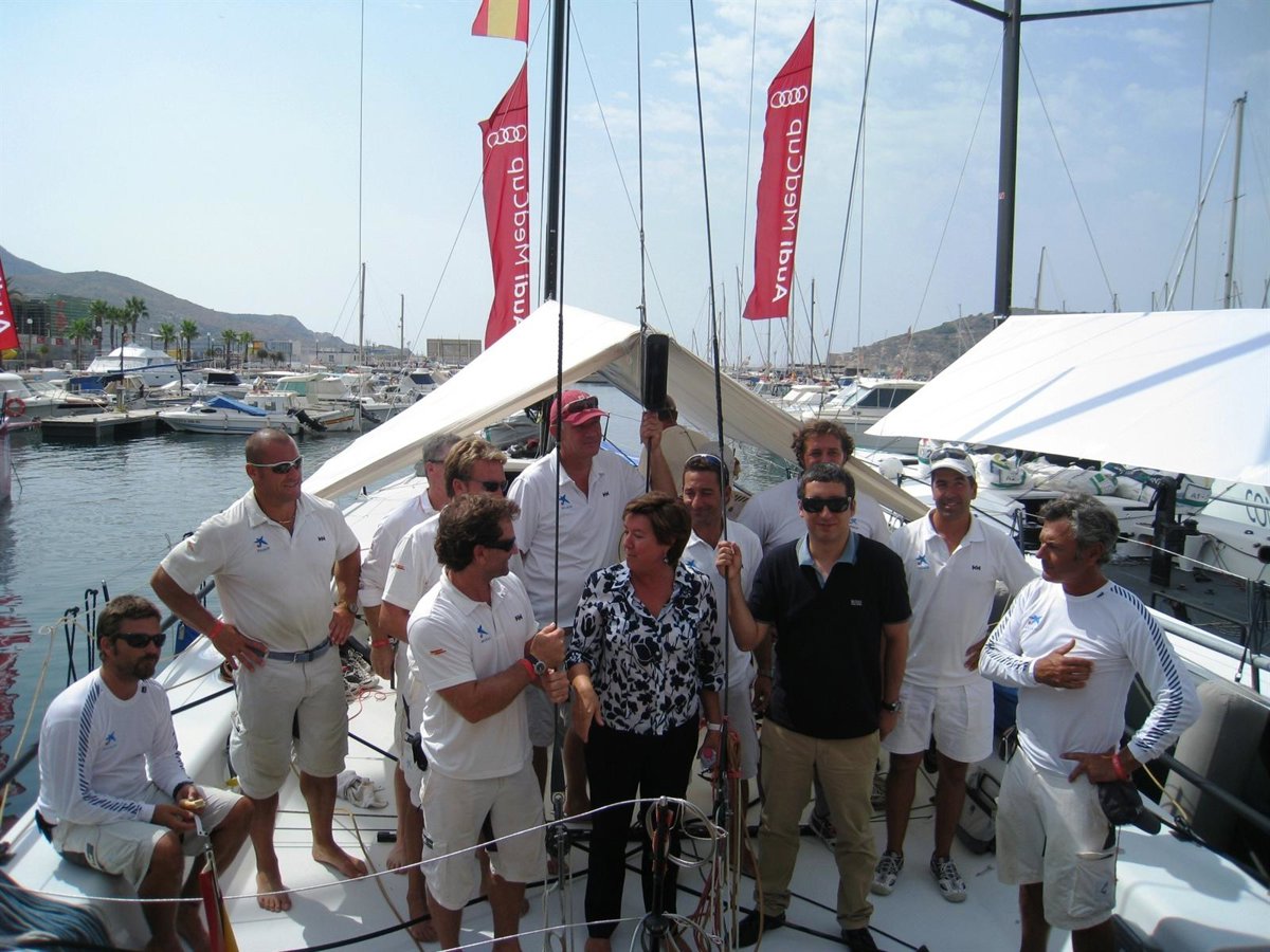 Junto a la alcaldesa, el consejero de Cultura y Turismo, Pedro Alberto Cruz, y el director técnico de la Audi Med Cup, Nacho Postigo, además del director general de Deportes, Antonio Peñalver y los concejales de Urbanismo, Joaquín Segado, Deportes, José Cabezos, Festejos, Florentina García Vargas, e Infraestructuras, Francisco Espejo, que han recorrido las instalaciones de la regata, que da el pistoletazo de salida este martes y concluye el próximo domingo 28 de agosto.