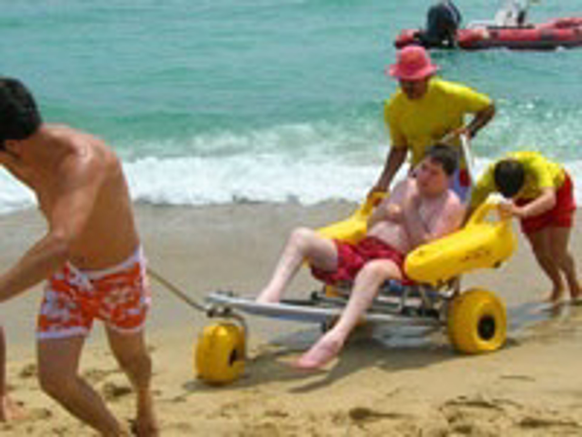 Cruz Roja Juventud Cartagena ha puesto en marcha un año más el servicio de baño adaptado a través de las sillas anfibias en la Playa del Barco Perdido (Playa Hotel Entremares) y Mar de Cristal.