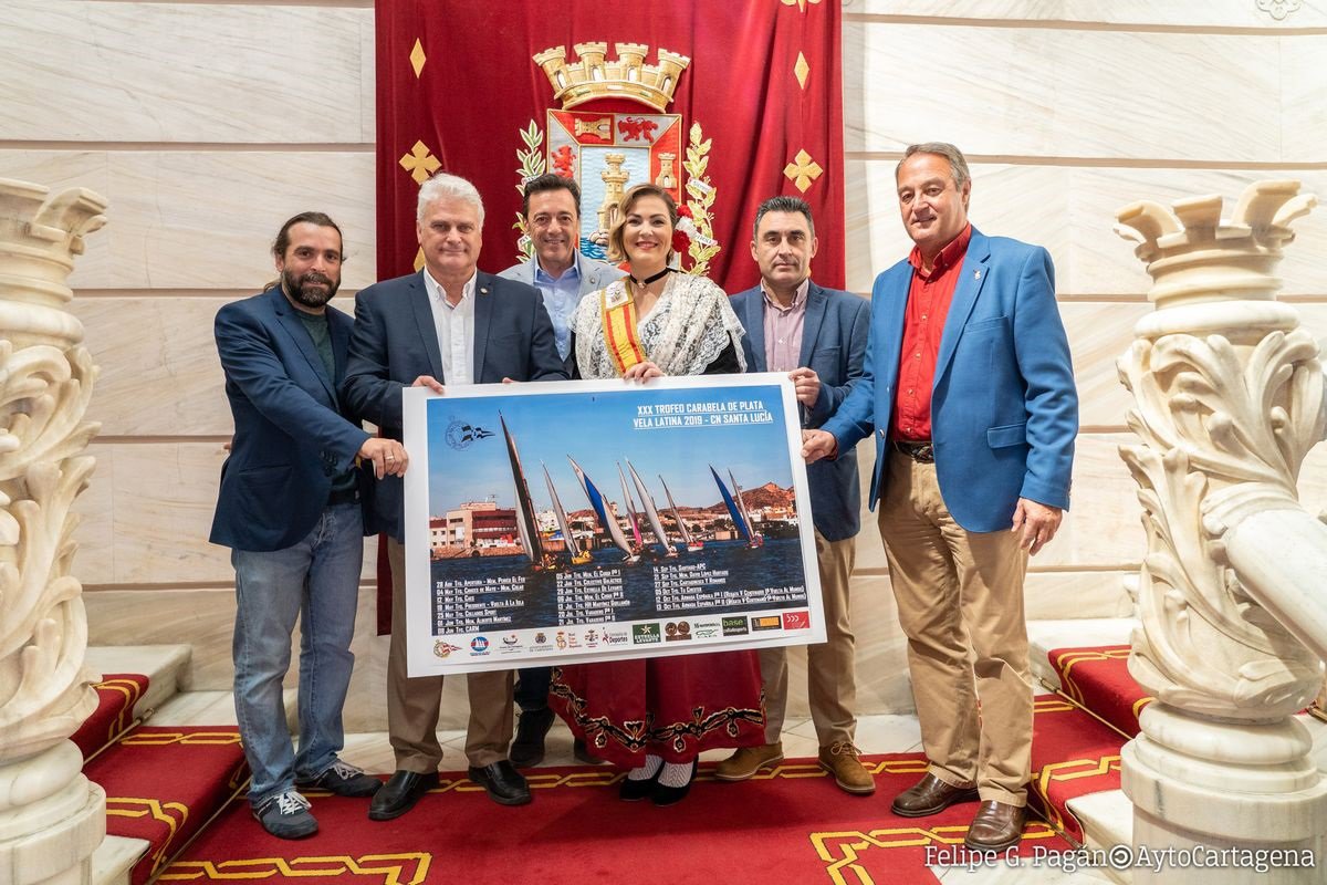 En la presentación del calendario este miércoles 24 de abril han estado: el concejal de Deportes de Cartagena, Manuel Mora, el presidente de la Federación de Vela de la Región de Murcia Arturo García Pallarés, el presidente del Club Náutico Santa Lucía Diego F. Varela Formoso, el vocal de Vela Latina y Clásica Emilio Gil Pagán y el vocal de Vela del Club Náutico Santa Lucía Javier Martínez Hurtado.