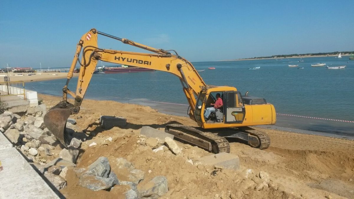 El Consistorio sanluqueño detalla en una nota que, en Bajo de Guía, la Demarcación de Costas está colocando una escollera para evitar más pérdida de arena y daños en el paseo marítimo.