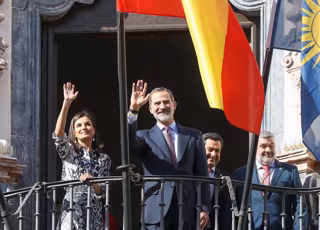 Los reyes en el balcón del Museo histórico Municipal. Écija (Sevilla) a seis de febrero del 2020 - María José López - Europa Press