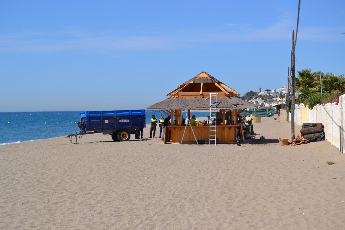 El Ayuntamiento del municipio malagueño de Mijas ha comenzado a desmontar este jueves un quiosco de playa ilegal y ha detenido a uno de los miembros de la familia dueña del mismo por encerrarse en su interior para impedirlo y por resistencia y desobediencia a la Policía Local.