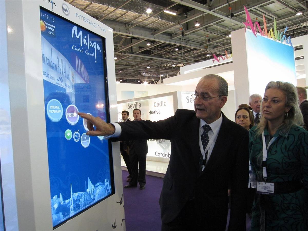 El alcalde de Málaga, Francisco de la Torre, y la concejala de Economía y Turismo, Carolina España, han presentado este lunes, en el marco de la World Travel Market (WTM) de Londres, un novedoso sistema de información en la ciudad a través de 10 pantallas táctiles que se instalarán en hoteles y lugares de mayor afluencia de viajeros.