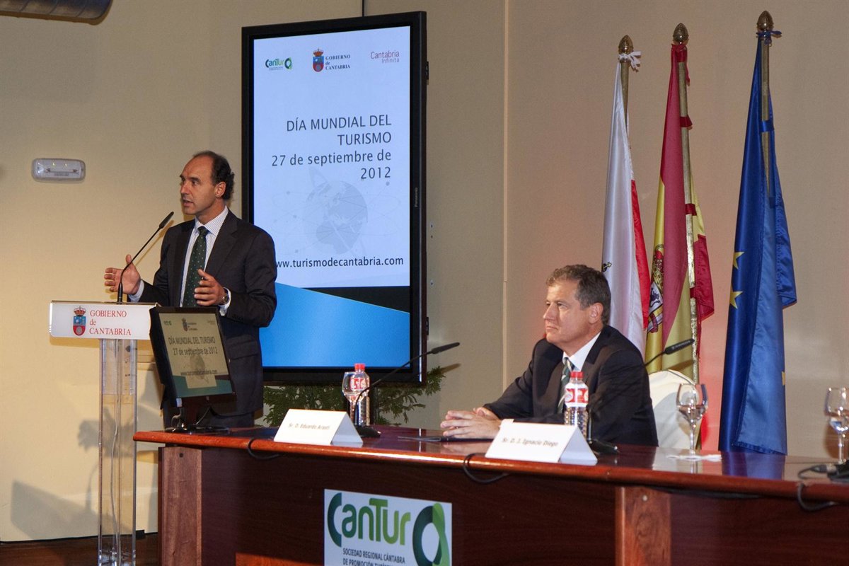 El presidente de Cantabria, Ignacio Diego, ha expuesto estas cuestiones durante el acto de conmemoración del Día Mundial del Turismo que el Ejecutivo ha organizado en el Aula de Educación Medioambiental del Parque de la Naturaleza de Cabárceno. Han intervenido, además, el consejero de Innovación, Industria, Turismo y Comercio, Eduardo Arasti; el delegado del Gobierno en Cantabria, Samuel Ruiz, y el experto en Social Media, Jimmy Pons, que ha impartido una pequeña ponencia sobre la importancia de las redes sociales en el sector del turismo.