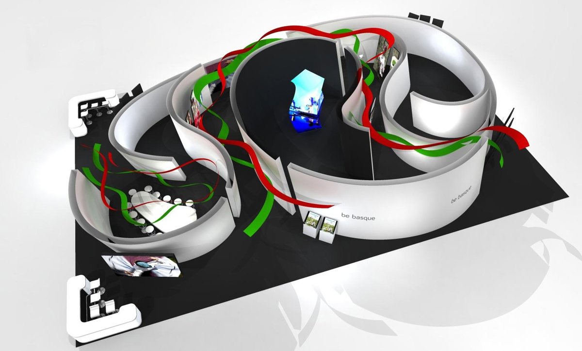 Esta estructura tiene tres puntos principales: los dos mostradores de atención al público en el pasillo principal, una zona de catas de txakoli y el área de proyección del mapping 3D, que ocupa el lugar central del stand, y cuya distribución sinuosa y en círculos conduce a ella por pasillos en los que se representan tres escenografías dedicadas a Gernika, Bilbao y el documental gastronómico producido por la Diputación Foral de Vizcaya "A la vizcaína".