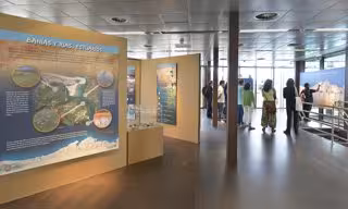 El centro cuenta con una maqueta que representa la geología de la Costa Quebrada; una serie de paneles informativos sobre los movimientos de placas, dataciones geológicas, cambios en el paisaje, vegetación y fauna; y una terraza desde donde se puede observar el litoral de La Maruca, su ría, acantilados y rasas mareales adyacentes.