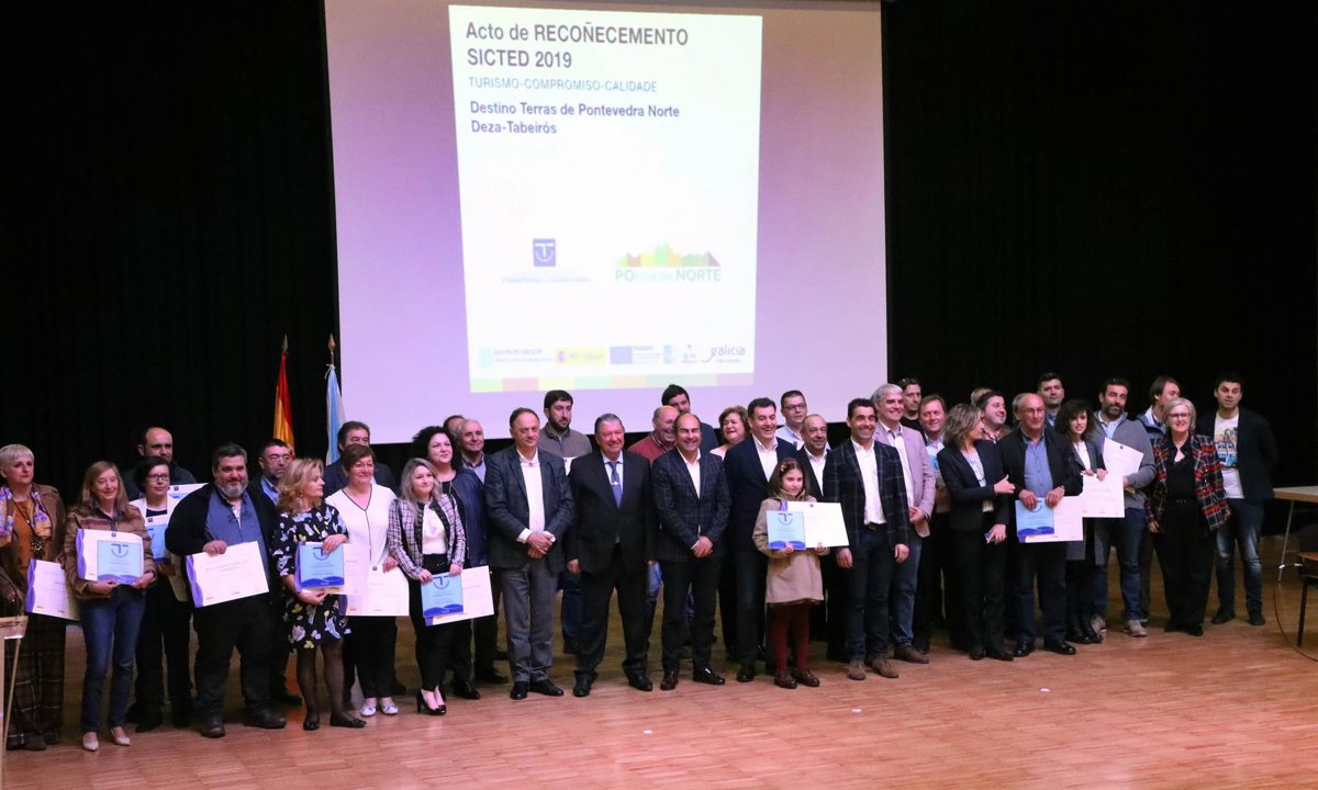 Un total de 42 entidades turísticas que desarrollan su actividad en destinos de Tierras de Pontevedra - Deza Tabeirós han recibido este sábado el reconocimiento de del Sistema Integral de Calidad Turística Española en Destinos (SICTED), en una gala que se ha celebrado en el auditorio Manuel Costa Casares de Agolada y que ha contado con la presencia del conselleiro de Cultura e Turismo, Román Rodríguez.