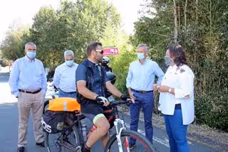 El vicepresidente de la Xunta en funciones, Alfonso Rueda, y la comisaria del Xacobeo 2021, Cecilia Pereira, han visitado este miércoles una de las patrullas en el ayuntamiento coruñés de O Pino, durante una de sus jornadas de trabajo. Al encuentro también ha acudido el director xeral de Emerxencias e Interior, Santiago Villanueva, y el alcalde de O Pino, Manuel Taboada.