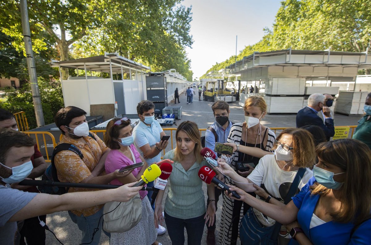 La delegada de Cultura, Turismo y Deporte, Andrea Levy, responde a los medios durante su visita al montaje de la 80 edición de la Feria del Libro de Madrid - Alberto Ortega - Europa Press