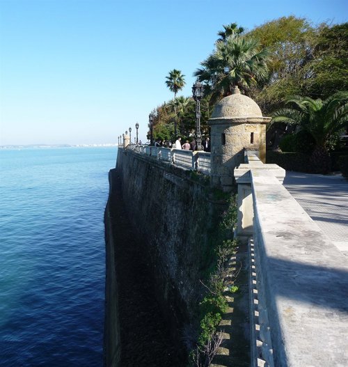 La ruta continúa por la Plaza de España y el Monumento a las Cortes que sorprende por su rico repertorio iconográfico. Le sigue "Las casas de las cuatro y cinco torres" y en el Barrio de San Carlos, sus murallas, construidas para la defensa ante los ataques marítimos, que son la alameda Apodaca es, sin duda, uno de los paseos más bonitos de la ciudad. En esta zona se la ciudad se levanta el Monumento al Marqués de Comillas y los Monumentos a varios escritores hispanoamericanos, muchos de ellos firmantes de la Constitución.