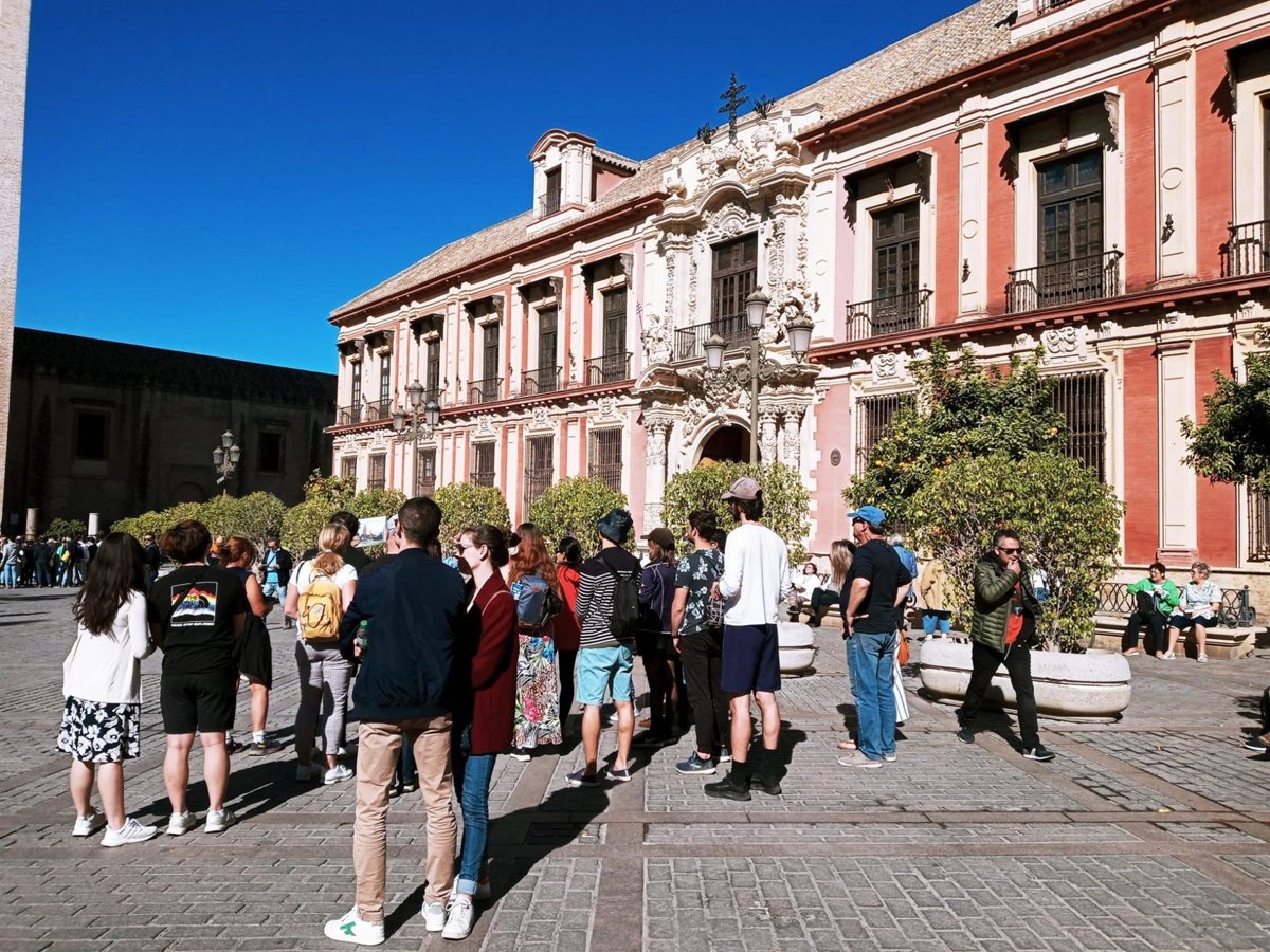 Turistas en la Plaza Virgen de los Reyes de Sevilla. - ALFREDO GUARDIA