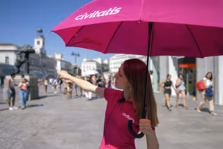 Archivo - Una guía turística en la Puerta del Sol de Madrid. - CIVITATIS - Archivo