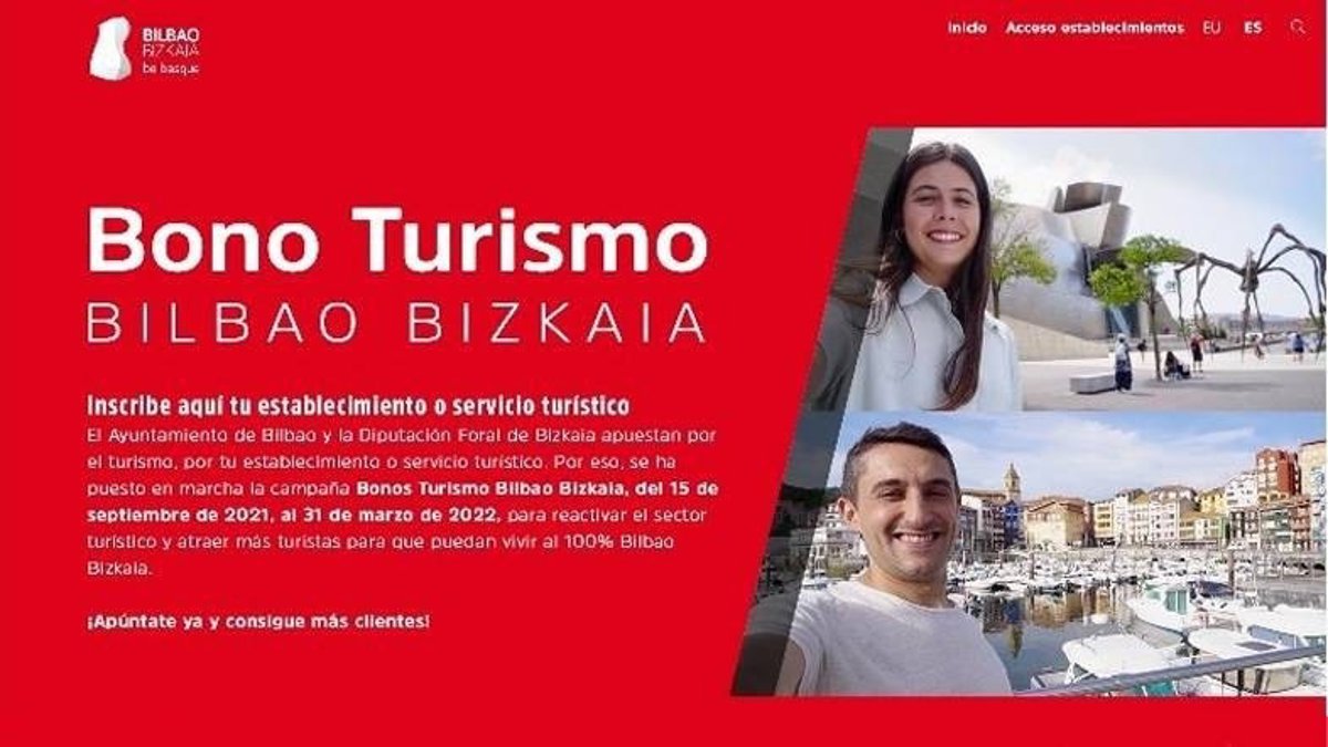 La campaña, con un presupuesto de 2 millones aportados a partes iguales por Diputación y Ayuntamiento, ha comenzado este lunes con la adhesión en una primera etapa y de manera continuada de los establecimientos y empresas turísticas --fundamentalmente alojamientos, guías y actividades turísticas y agencias-- en la plataforma web www.bonoturismobilbaobizkaia.eus.