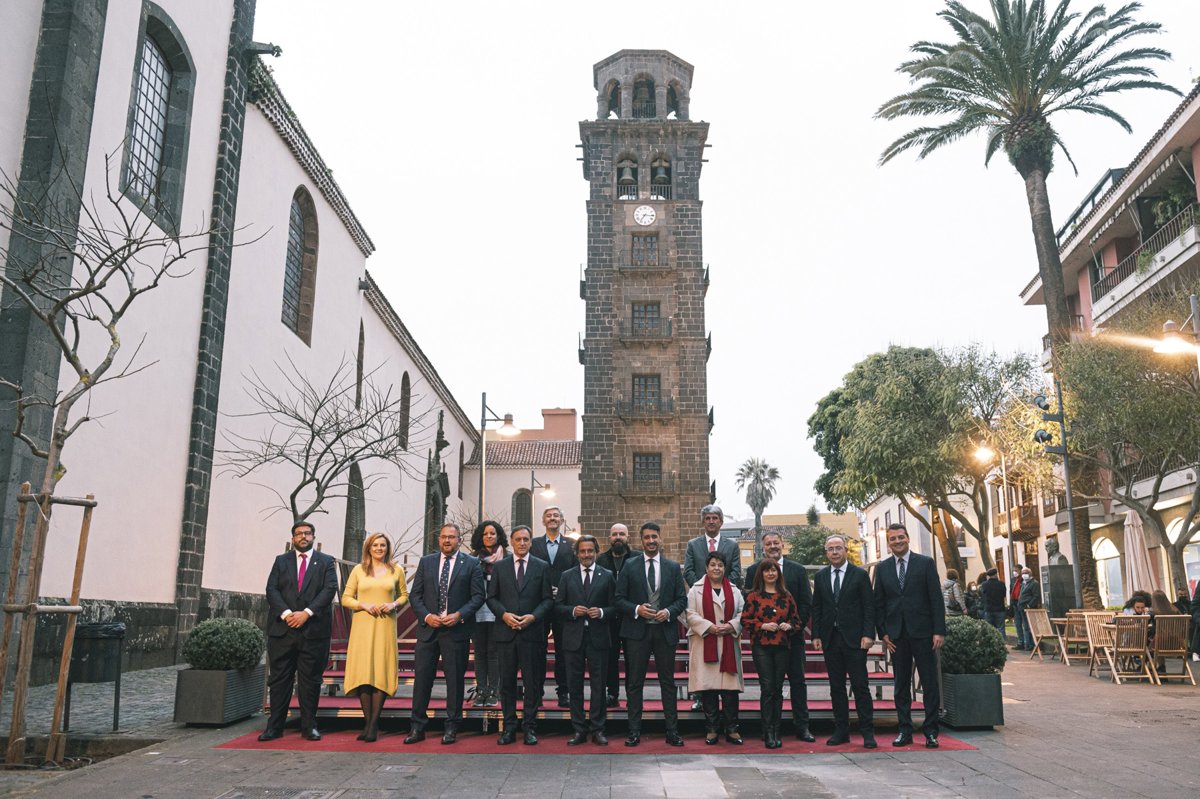 Archivo - Alcaldes y alcaldesas del Grupo de Ciudades Patrimonio de la Humanidad de España (GCPHE) frente a la torre de La Concepción de La Laguna - AYUNTAMIENTO DE LA LAGUNA - Archivo