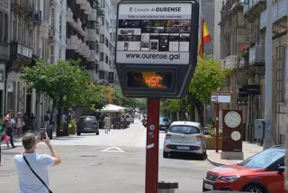 Un hombre hace una fotografía a un termómetro en la calle que marca 45 grados, a 12 de julio de 2022, en Orense, Galicia (España). - Rosa Veiga - Europa Press